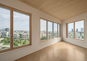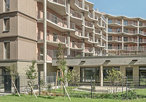 Die Integration einer Baugruppe in eine geförderte Wohnanlage eröffnete neue Potenziale und Synergien. Öffentliche Einrichtungen wie Kindergarten, SOS-Kinderdorf, Gastronomie und Co-Working im Erdgeschoss strahlen weit in das Quartier aus und schaffen ein offenes urbanes Zentrum. Unterschiedliche Wohnungstypen sowie das JUNO – Zentrum für Getrenntlebende und Alleinerziehende erfüllen die Wohnbedürfnisse aller Generationen und verschiedener Lebenssituationen und fördern so die soziale Durchmischung.